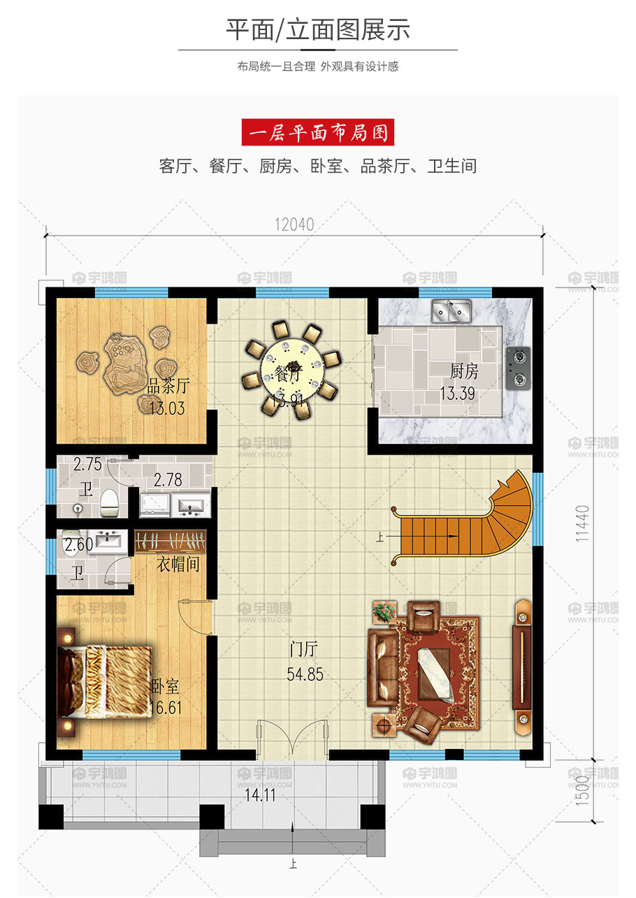 | 開(kāi)間:12.04米 | 進(jìn)深:12.94米 | 占地面積:137.7平方米 | 建筑面積:270.6平方米 |