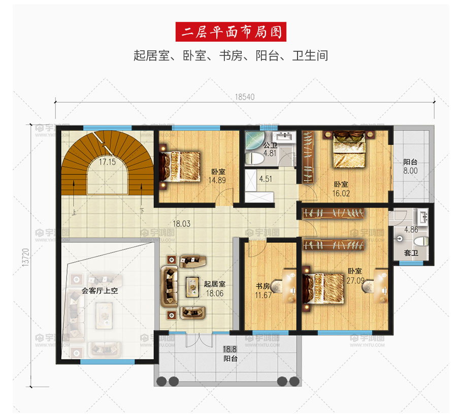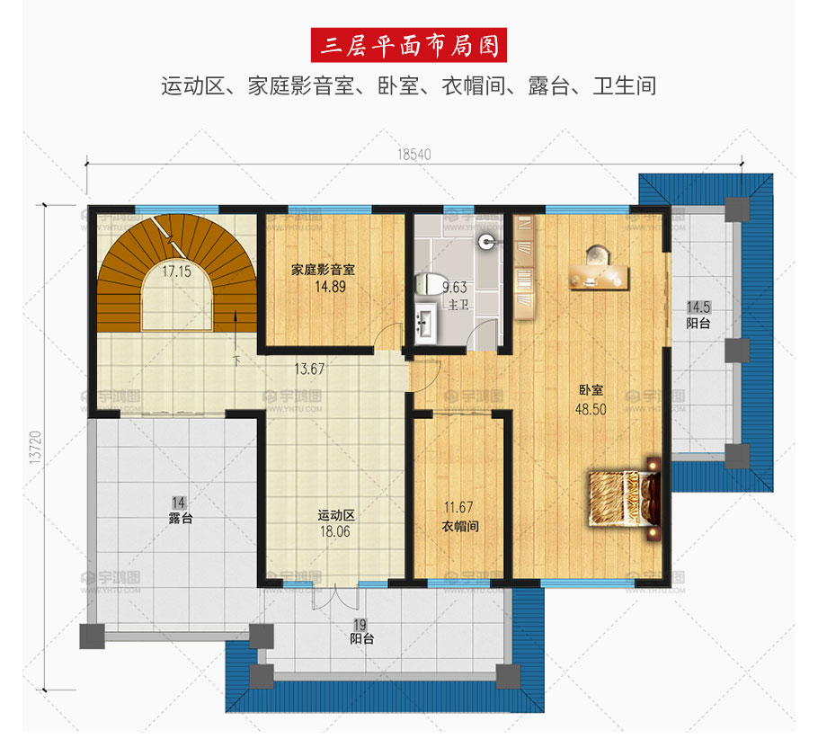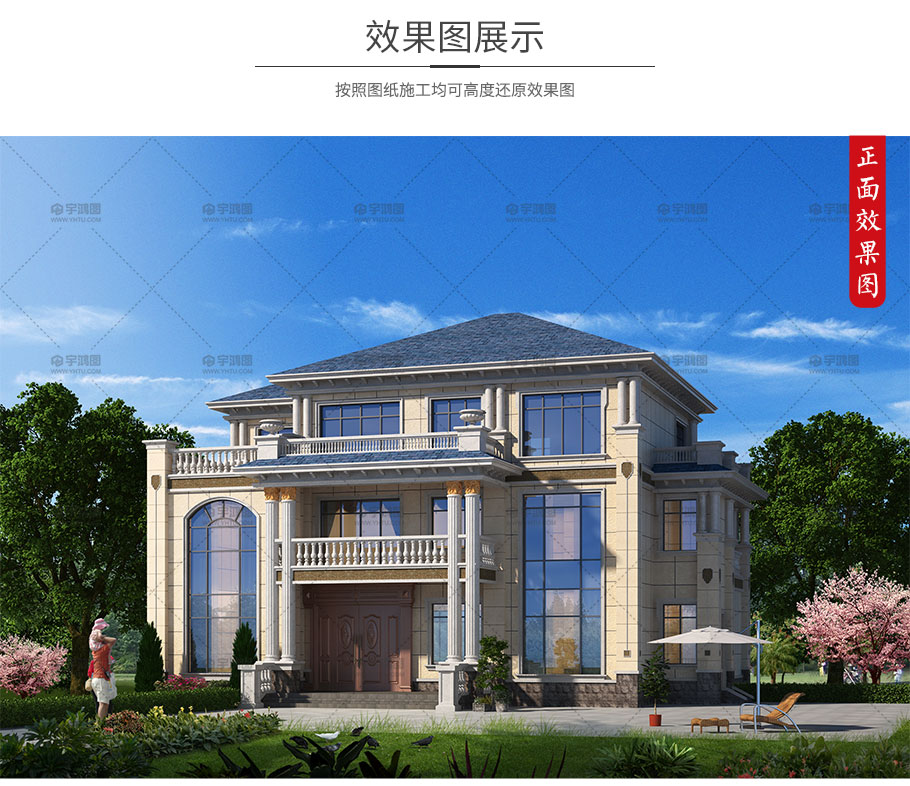 200平帶旋轉樓梯三層歐式別墅設計圖紙及效果圖片
