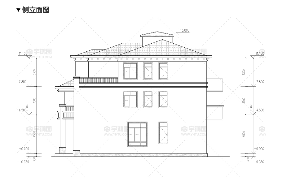 | 風格:歐式 | 層數:三層 | 結構形式:磚混結構 | 圖紙編號:YH-A-3091 |