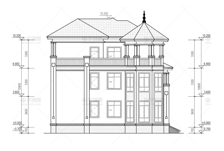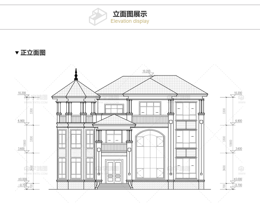 | 風格:歐式 | 層數:三層 | 結構形式:框架結構 | 圖紙編號:YH-A-3094 |