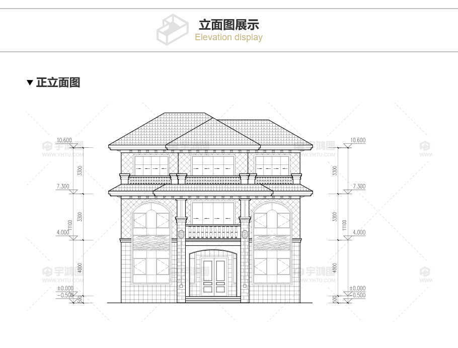 建筑立面圖:東立面圖,西立面圖,南立面圖,北立面圖,剖面圖;
