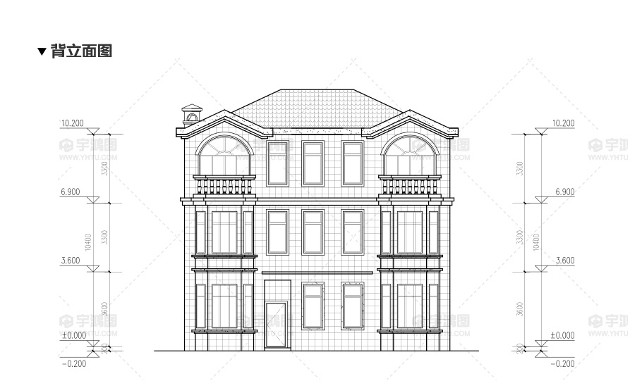 建筑立面圖:東立面圖,西立面圖,南立面圖,北立面圖,剖面圖;