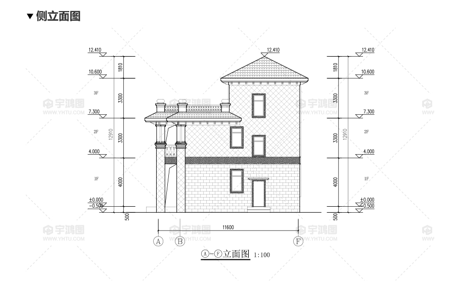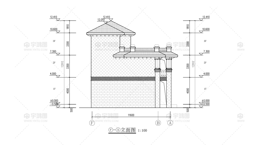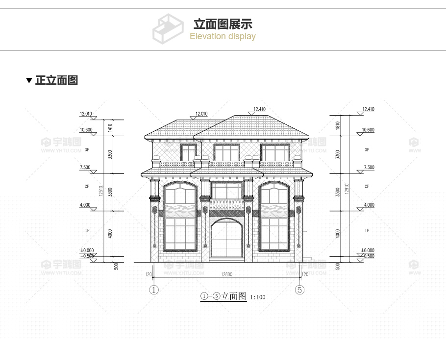 | 風格:歐式 | 層數:三層 | 結構形式:磚混結構 | 圖紙編號:YH-A-3031 |