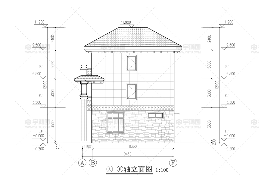 | 風格:歐式 | 層數:三層 | 結構形式:磚混結構 | 圖紙編號:YH-A-3099 |