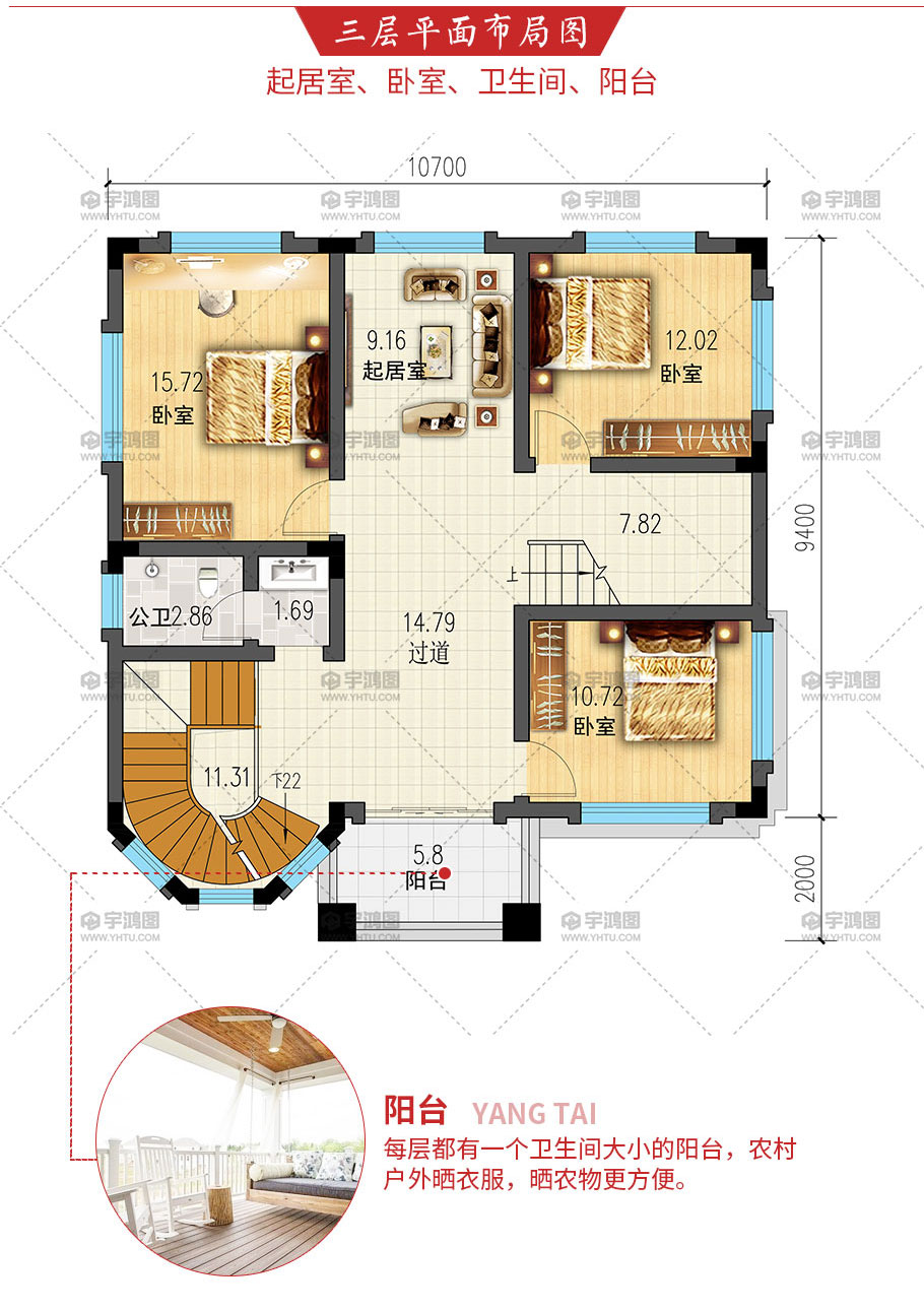 | 開間:10.7米 | 進深:11.4米 | 占地面積:104.5平方米 | 建筑面積:386平方米 |