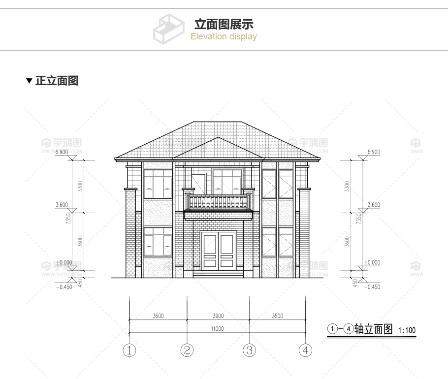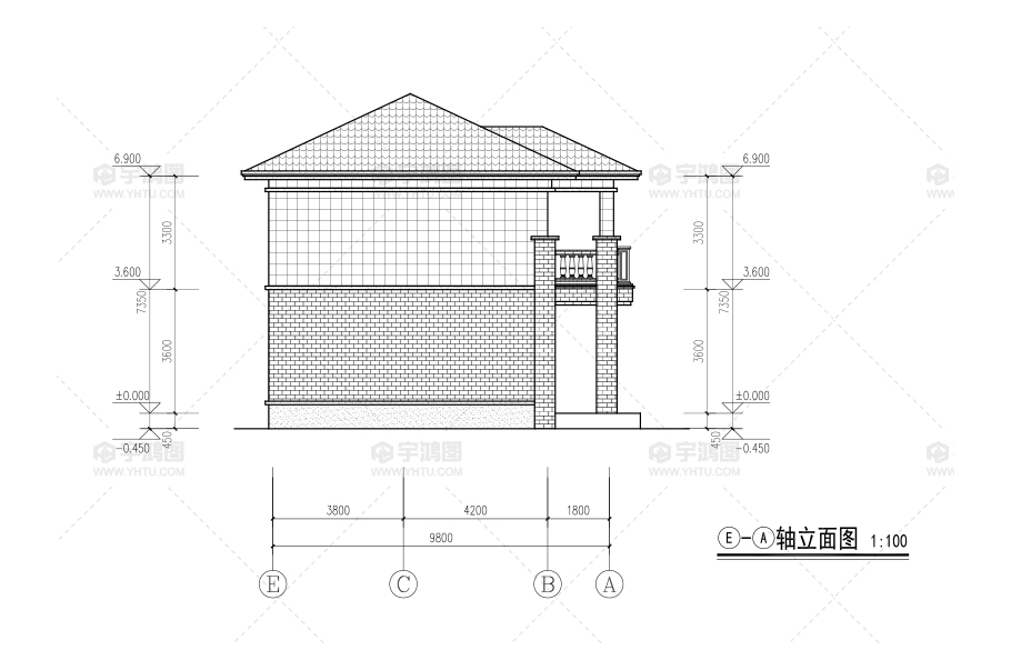 | 風格:簡歐 | 層數:二層 | 結構形式:磚混結構 | 圖紙編號:YH-A-2096 |