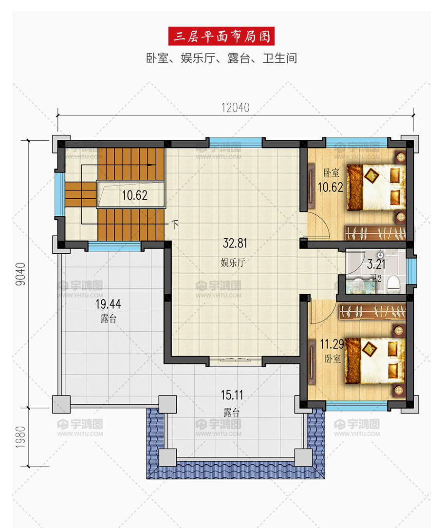 建筑平面圖:一層平面圖,二層平面圖,三層平面圖;