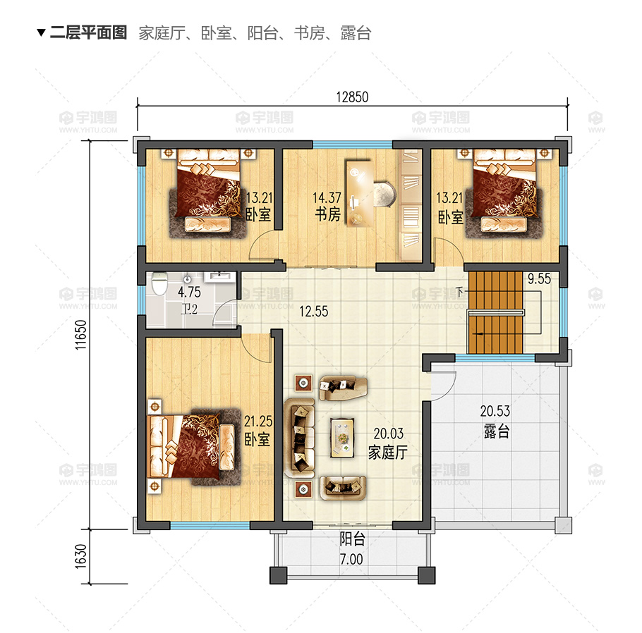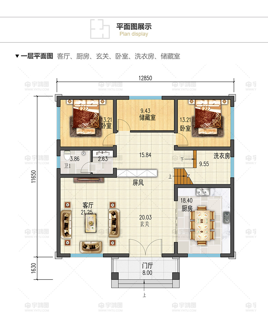 | 開間:12.85米 | 進深:13.28米 | 占地面積:149.7平方米 | 建筑面積:287平方米 |