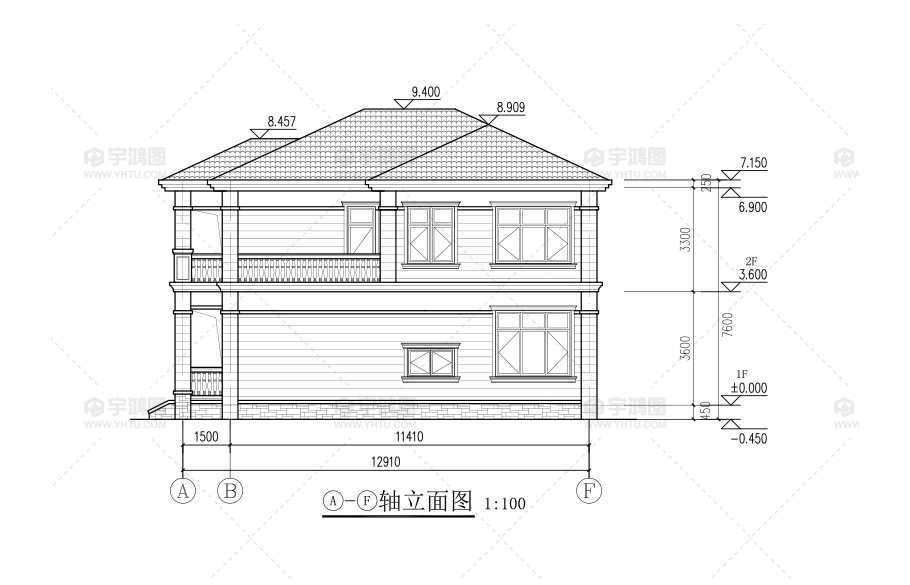 | 風格:歐式 | 層數:二層 | 結構形式:磚混結構 | 圖紙編號:YH-A-2097 |