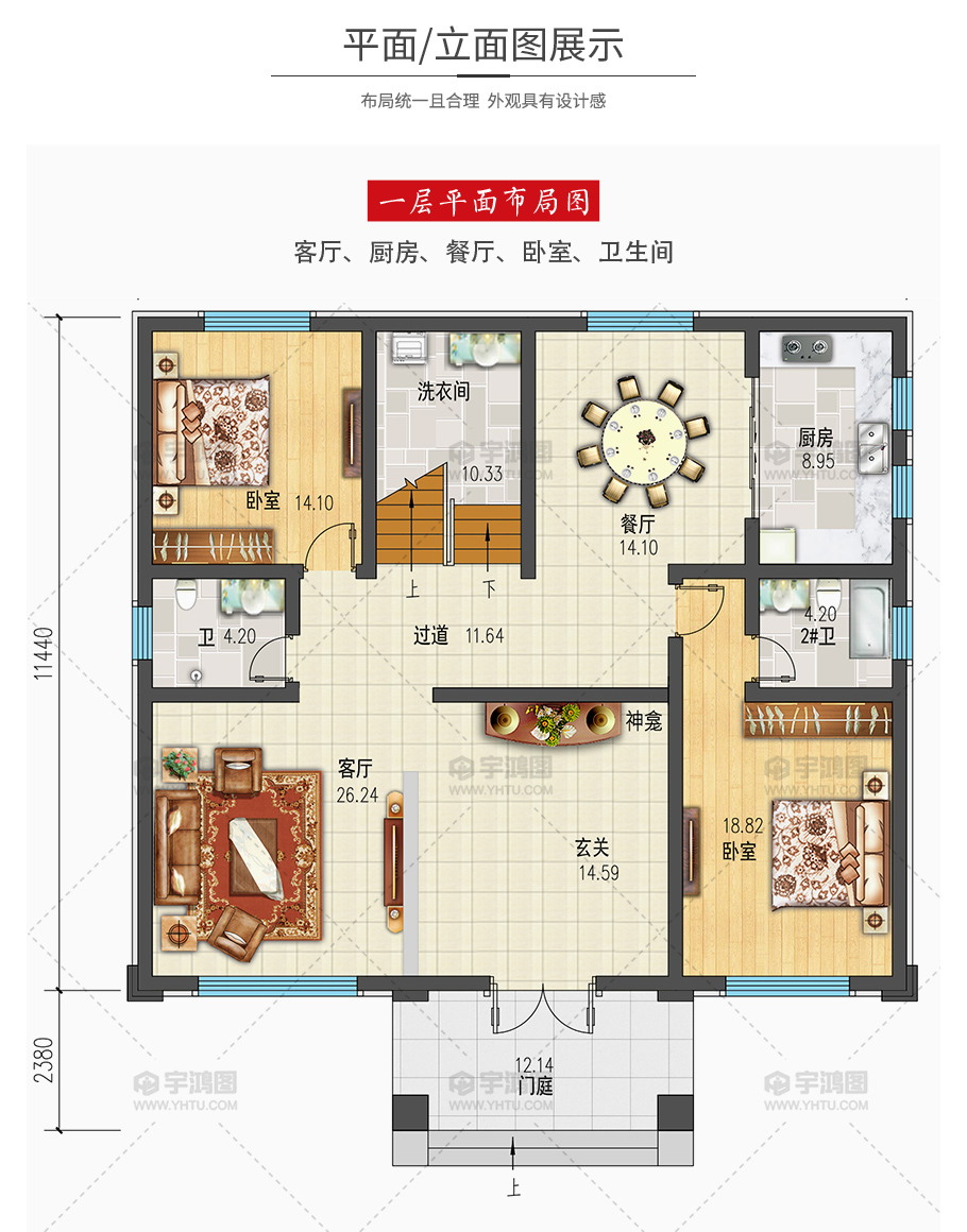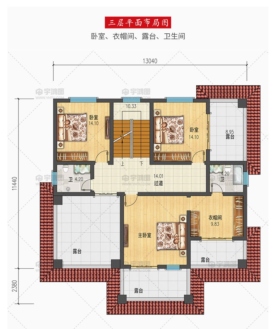 | 開間:13.04米 | 進深:13.82米 | 占地面積:149.2平方米 | 建筑面積:399.2平方米 |