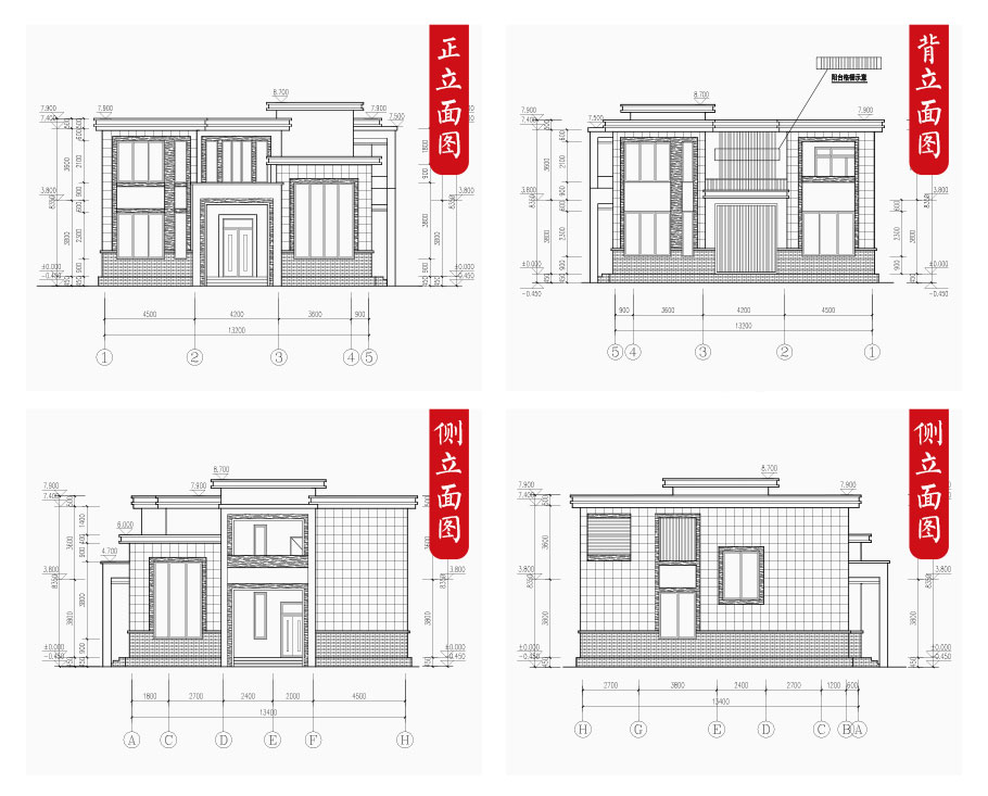 | 建筑圖: | 建筑平面圖:一層平面圖,二層平面圖; 建筑立面圖:東立面圖,西立面圖,南立面圖,北立面圖,剖面圖; 大樣圖:樓梯詳圖,細(xì)部大樣,門(mén)窗大樣 |