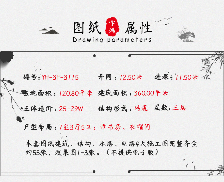 | 風(fēng)格:中式 | 層數(shù):三層 | 結(jié)構(gòu)形式:磚混結(jié)構(gòu) | 圖紙編號(hào):YH-A-3115 |