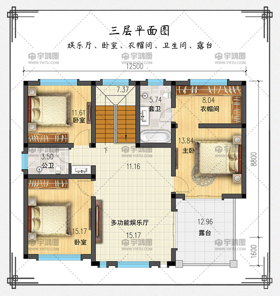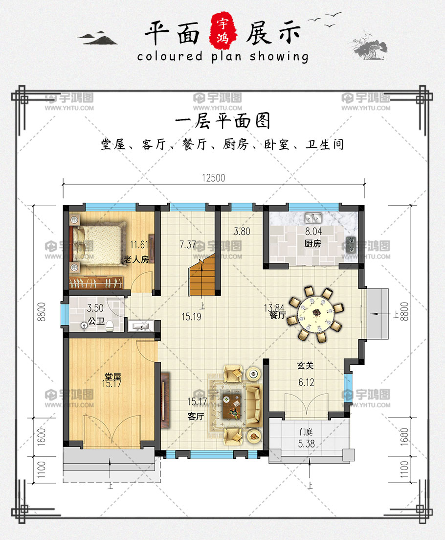 | 開(kāi)間:12.5米 | 進(jìn)深:11.5米 | 占地面積:120.8平方米 | 建筑面積:360平方米 |