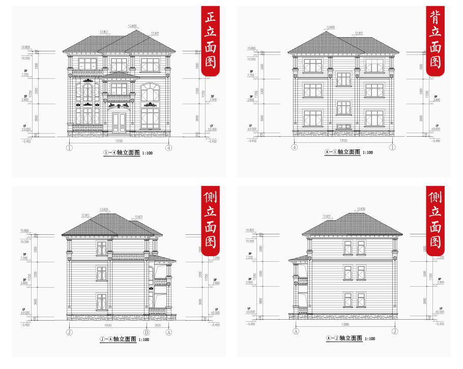 | 建筑圖: | 建筑平面圖:一層平面圖,二層平面圖,三層平面圖; 建筑立面圖:東立面圖,西立面圖,南立面圖,北立面圖,剖面圖; 大樣圖:樓梯詳圖,細部大樣,門窗大樣 |