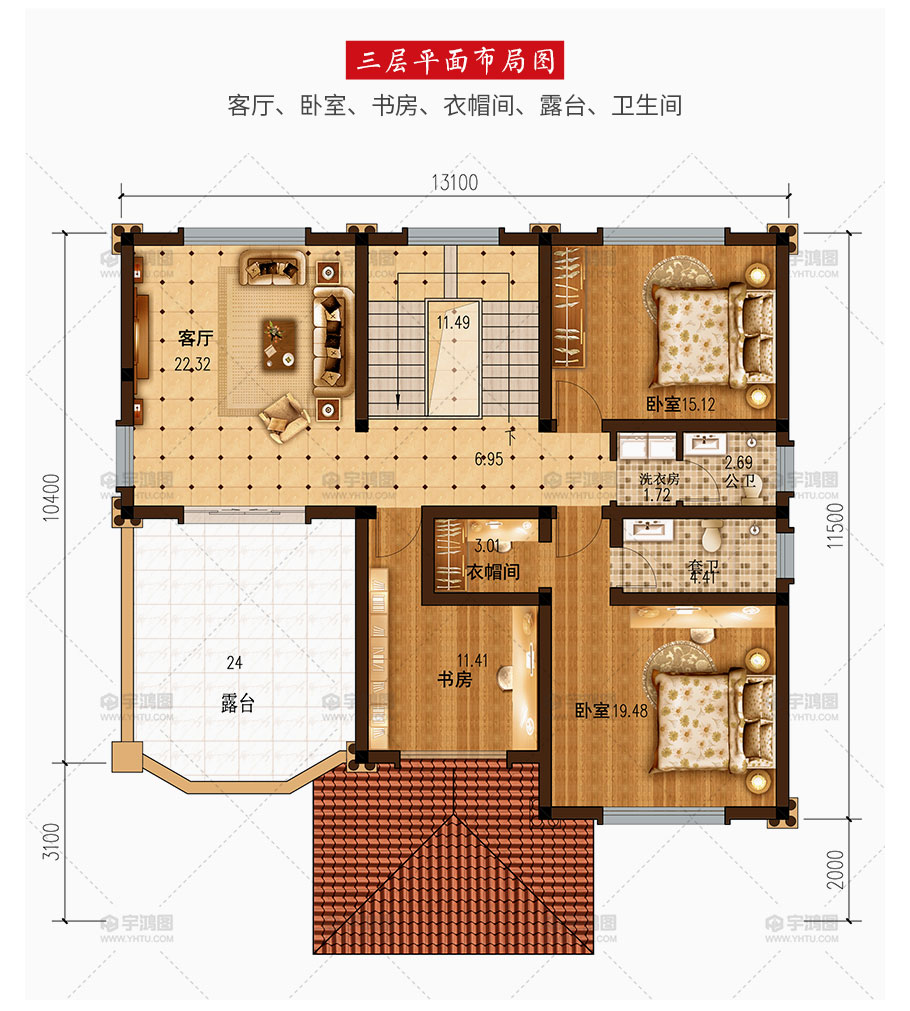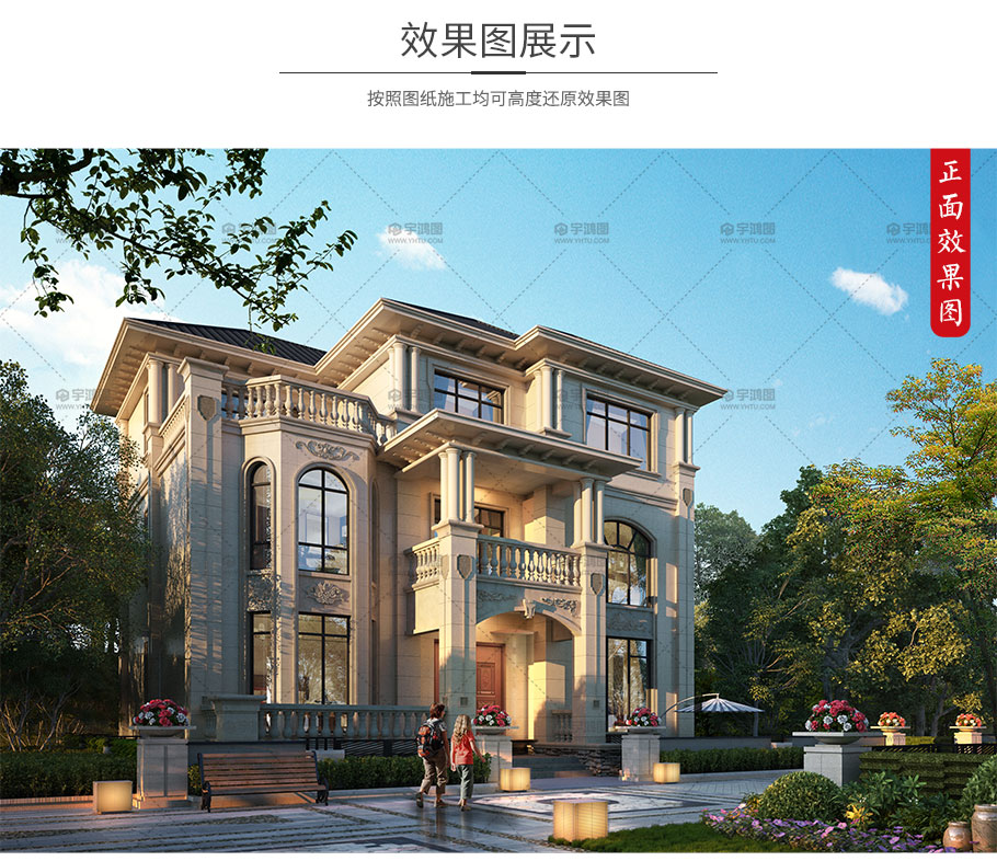 | 風格:歐式 | 層數:三層 | 結構形式:磚混結構 | 圖紙編號:YH-A-3117 |