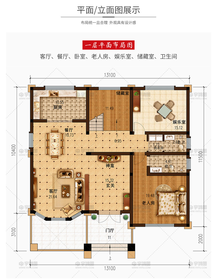| 開間:13.1米 | 進深:13.5米 | 占地面積:143.5平方米 | 建筑面積:420平方米 |