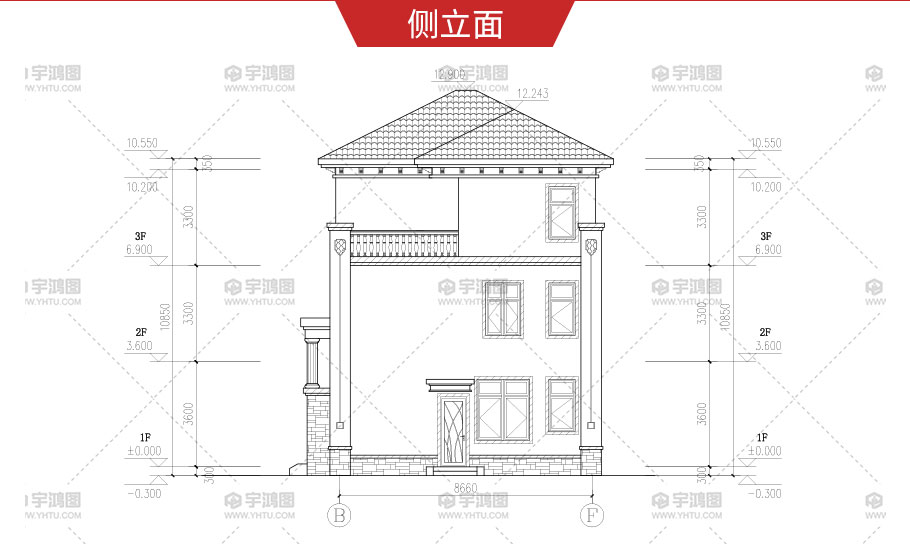 | 風格:歐式 | 層數:三層 | 結構形式:磚混結構 | 圖紙編號:YH-A-3122 |