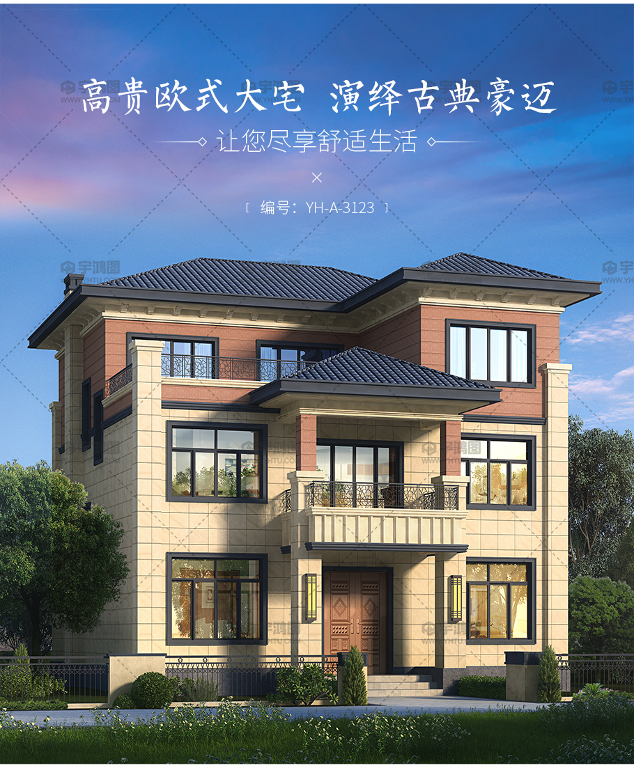 | 風(fēng)格:歐式 | 層數(shù):三層 | 結(jié)構(gòu)形式:磚混結(jié)構(gòu) | 圖紙編號:YH-A-3123 |