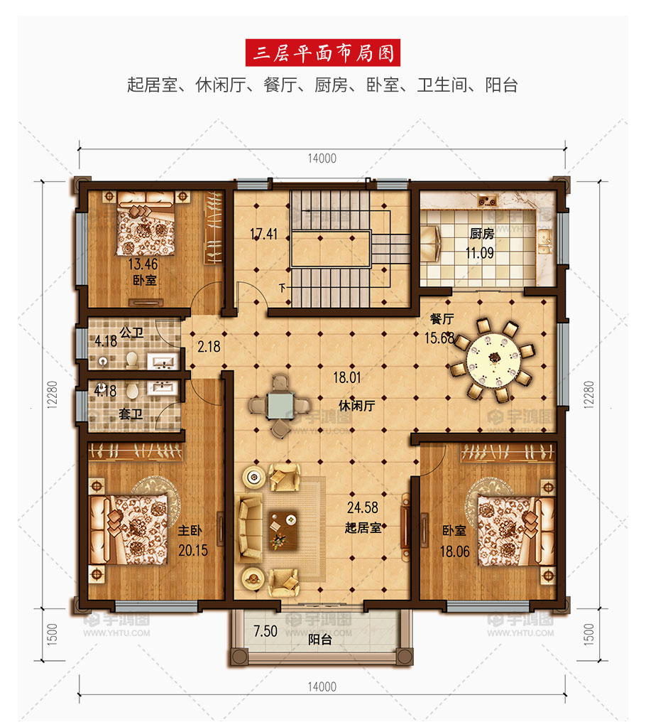 | 開間:14米 | 進深:13.78米 | 占地面積:171.9平方米 | 建筑面積:528平方米 |