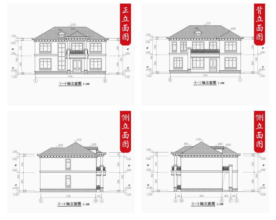 | 建筑圖: | 建筑平面圖:一層平面圖,二層平面圖; 建筑立面圖:東立面圖,西立面圖,南立面圖,北立面圖,剖面圖; 大樣圖:樓梯詳圖,細部大樣,門窗大樣 |