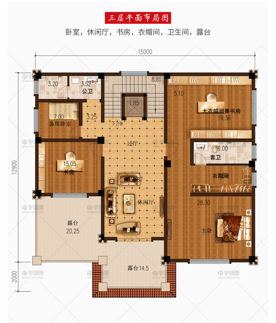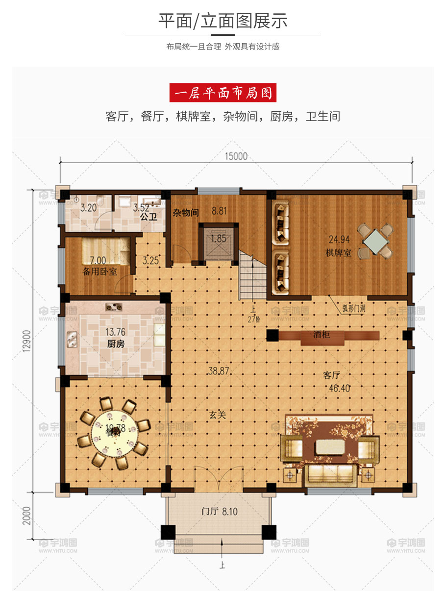 | 開間:15米 | 進深:14.9米 | 占地面積:193.5平方米 | 建筑面積:561平方米 |