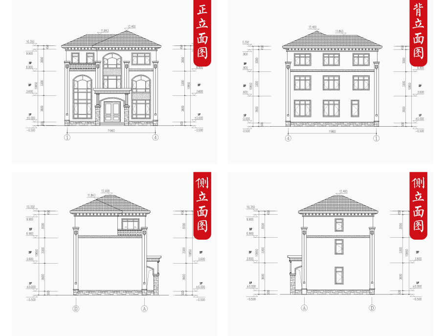 | 建筑圖: | 建筑平面圖:一層平面圖,二層平面圖,三層平面圖; 建筑立面圖:東立面圖,西立面圖,南立面圖,北立面圖,剖面圖; 大樣圖:樓梯詳圖,細(xì)部大樣,門窗大樣 |
