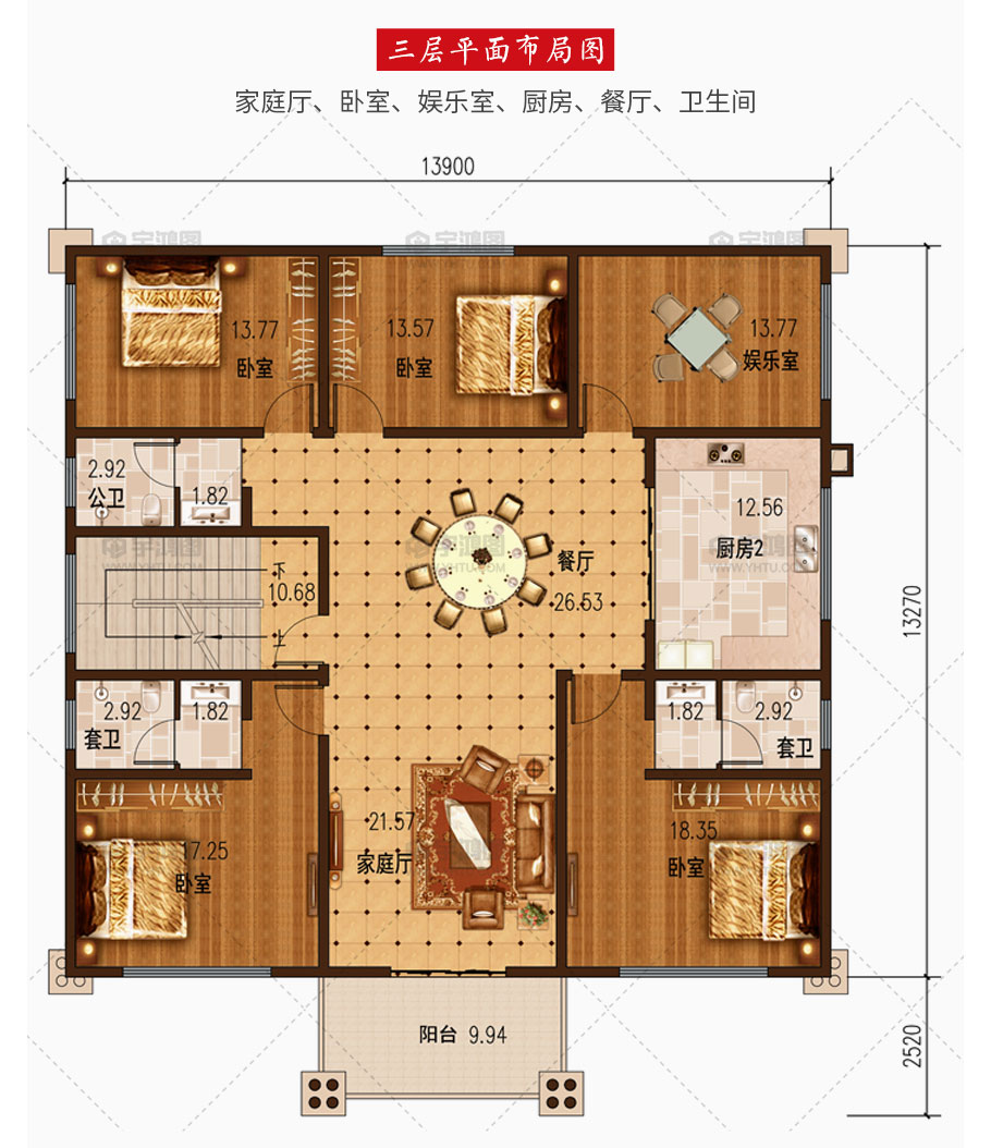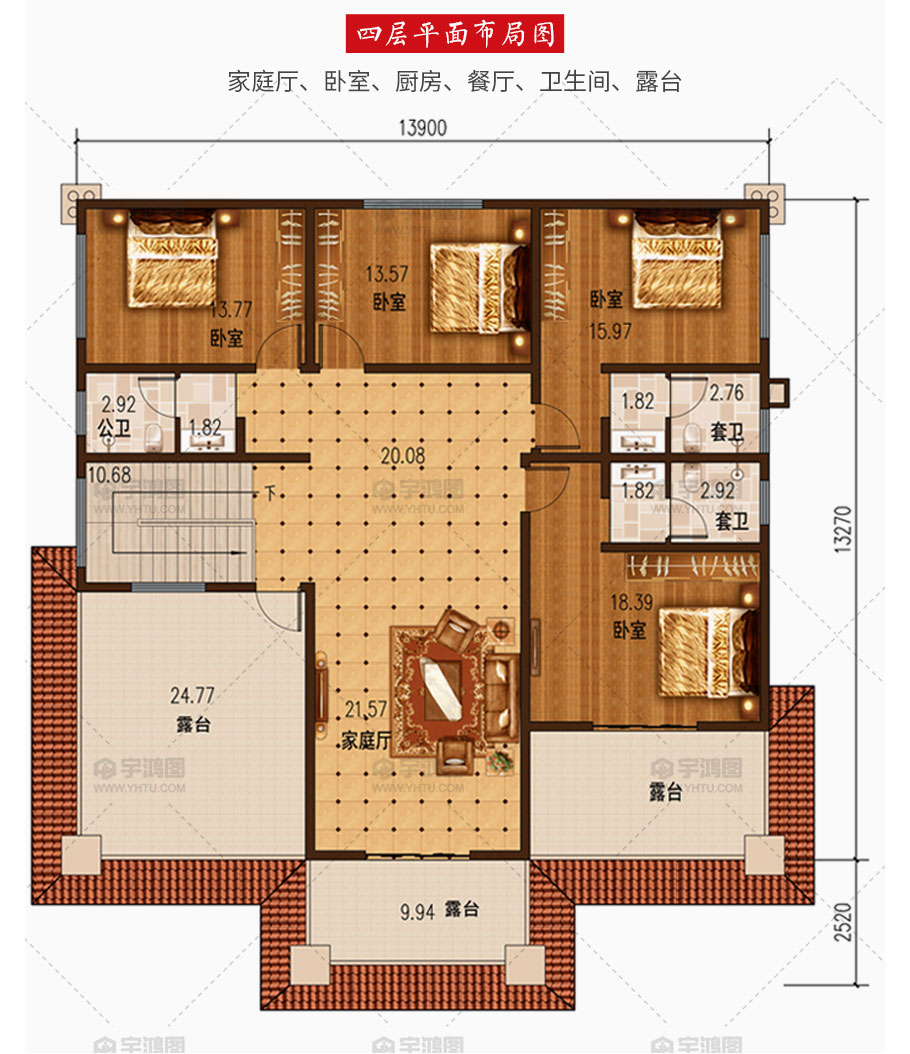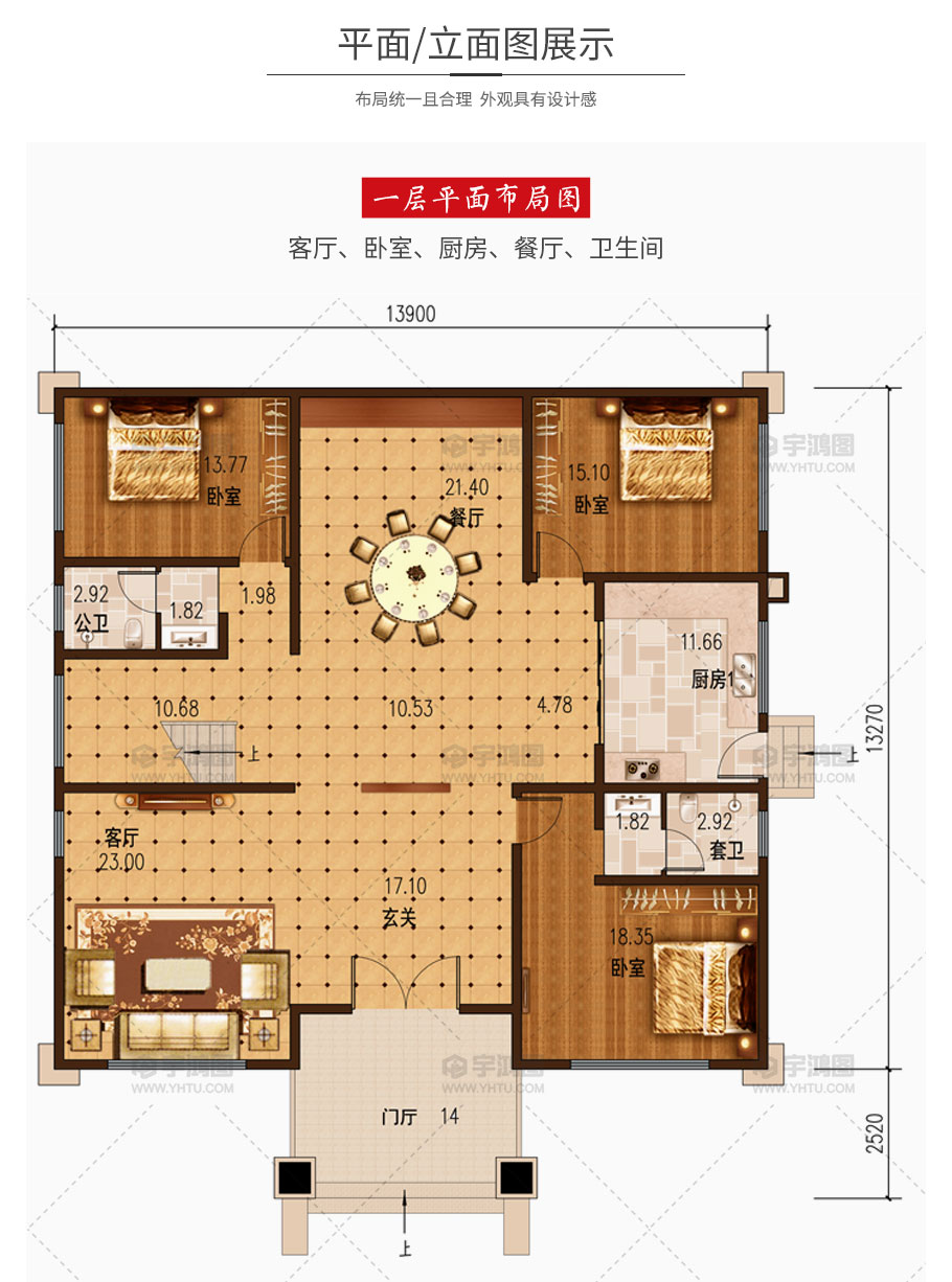 | 開(kāi)間:13.9米 | 進(jìn)深:15.79米 | 占地面積:184.5平方米 | 建筑面積:715.4平方米 |