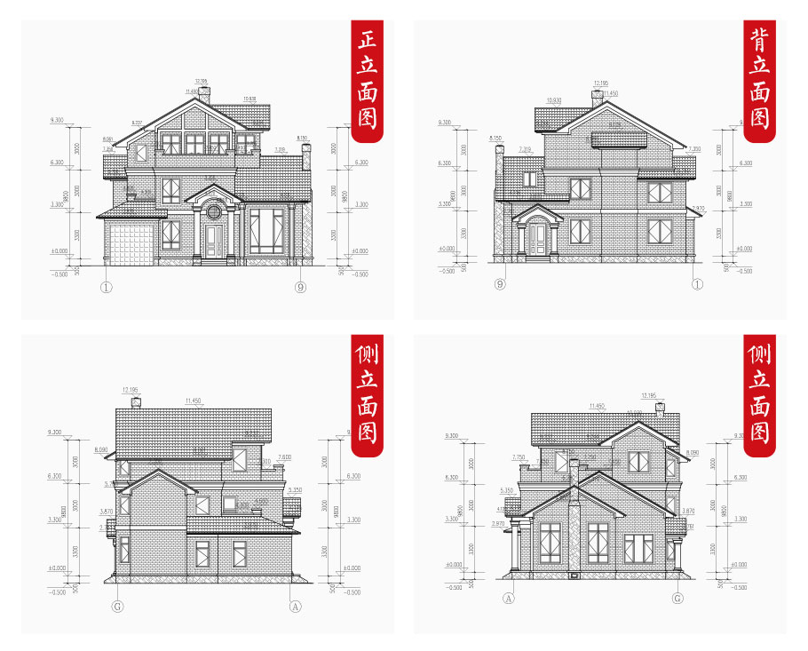 | 建筑圖: | 建筑平面圖:一層平面圖,二層平面圖,三層平面圖; 建筑立面圖:東立面圖,西立面圖,南立面圖,北立面圖,剖面圖; 大樣圖:樓梯詳圖,細部大樣,門窗大樣 |