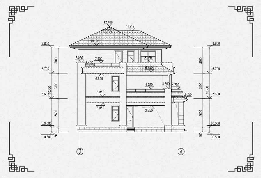 | 風格:中式 | 層數:三層 | 結構形式:框架結構 | 圖紙編號:YH-A-3139 |