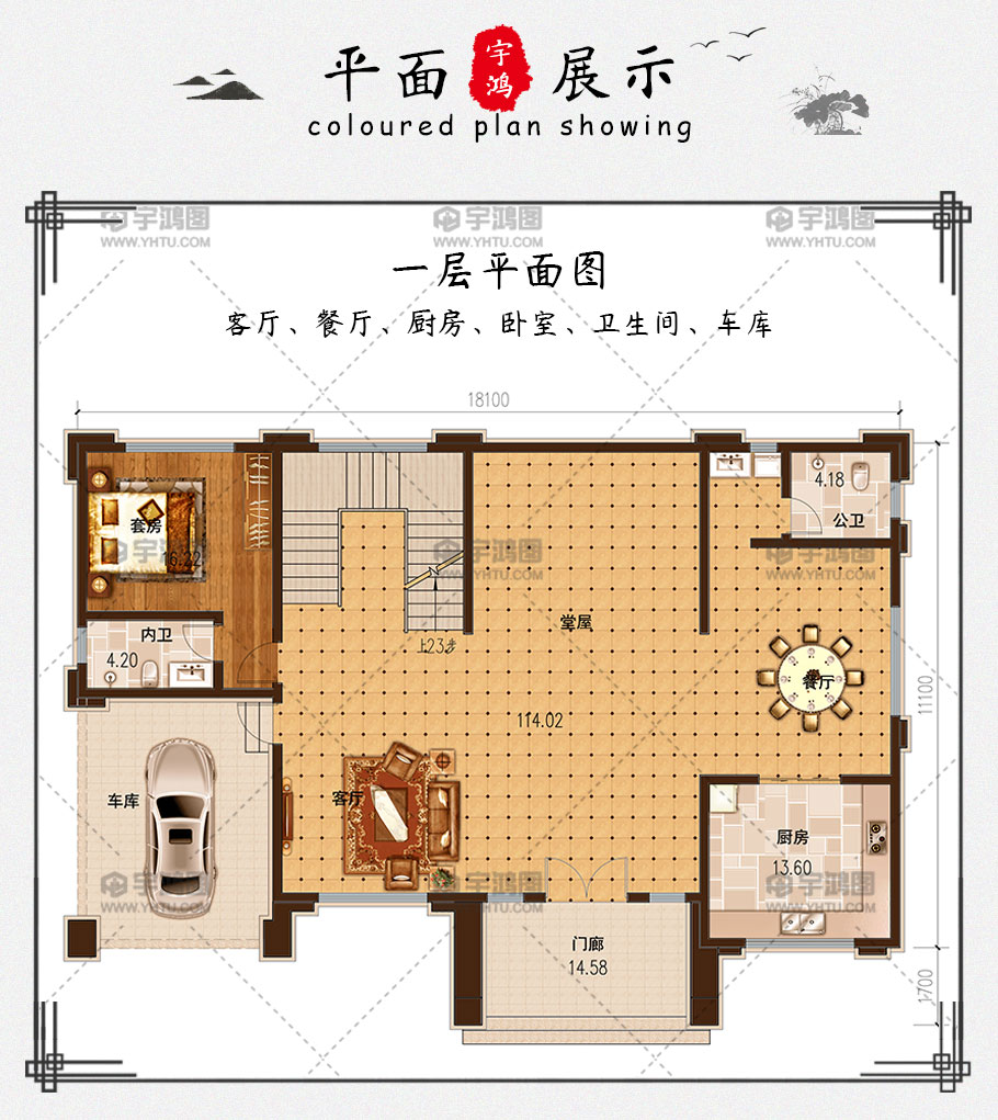 | 開間:18.1米 | 進深:12.8米 | 占地面積:191.9平方米 | 建筑面積:475平方米 |