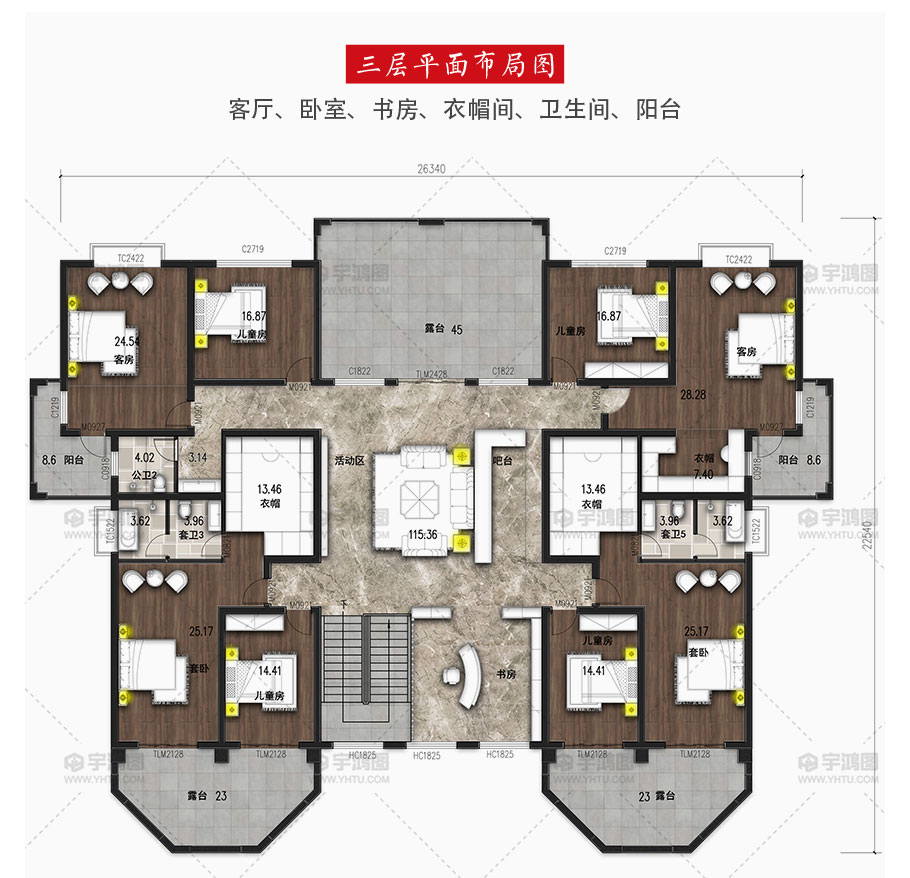 | 風格:歐式 | 層數:三層 | 結構形式:框架結構 | 圖紙編號:YH-A-3140 |