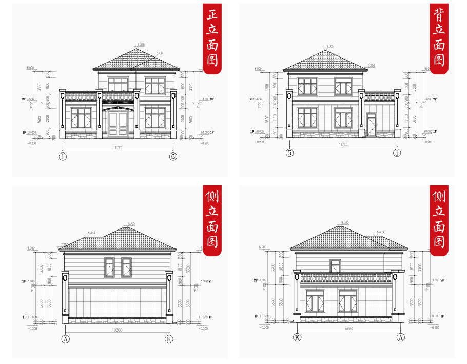 | 建筑圖: | 建筑平面圖:一層平面圖,二層平面圖; 建筑立面圖:東立面圖,西立面圖,南立面圖,北立面圖,剖面圖; 大樣圖:樓梯詳圖,細部大樣,門窗大樣 |