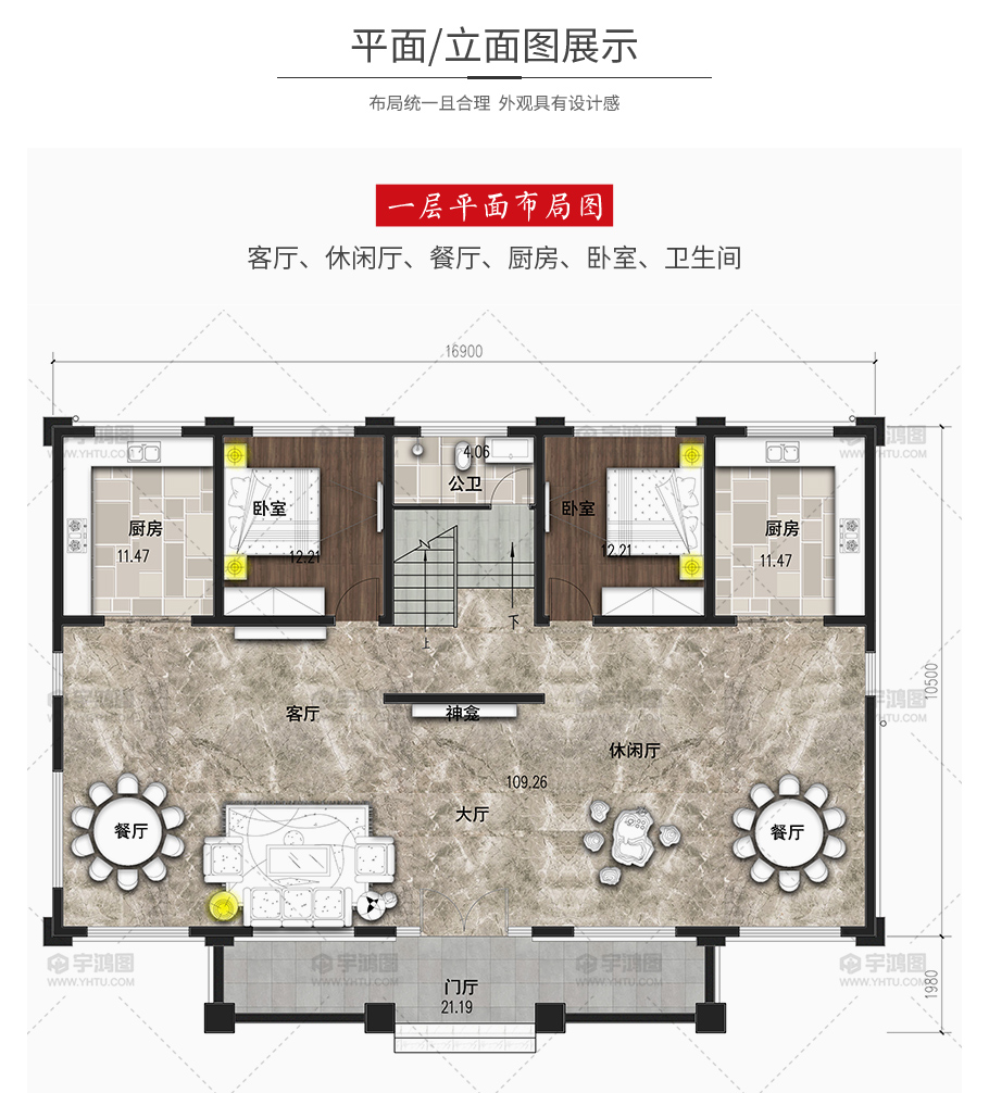 | 開間:16.9米 | 進深:12.48米 | 占地面積:177.5平方米 | 建筑面積:533平方米 |