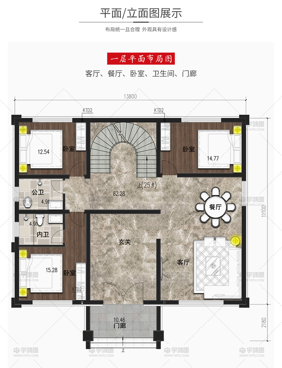 | 開間:13.8米 | 進深:13.28米 | 占地面積:153.2平方米 | 建筑面積:302平方米 |