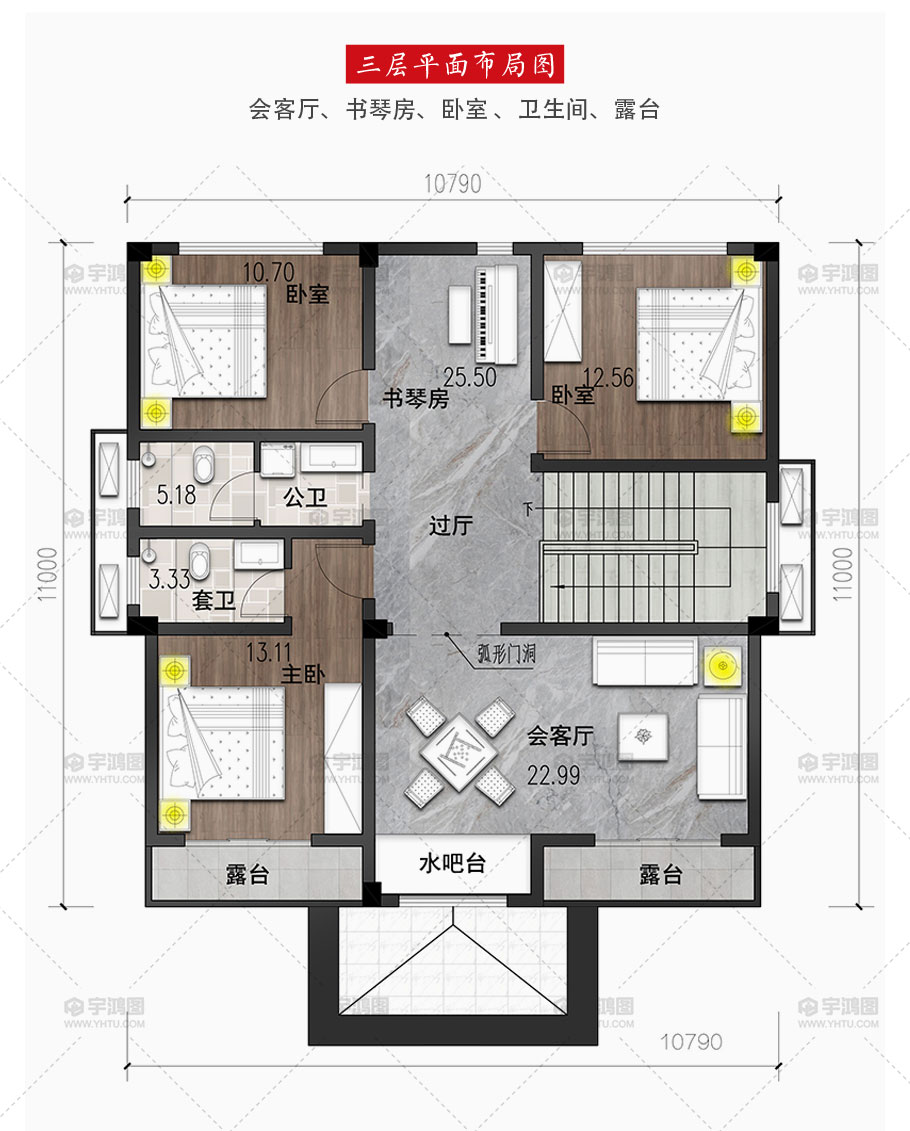 | 開間:10.79米 | 進深:12.96米 | 占地面積:116平方米 | 建筑面積:347.5平方米 |