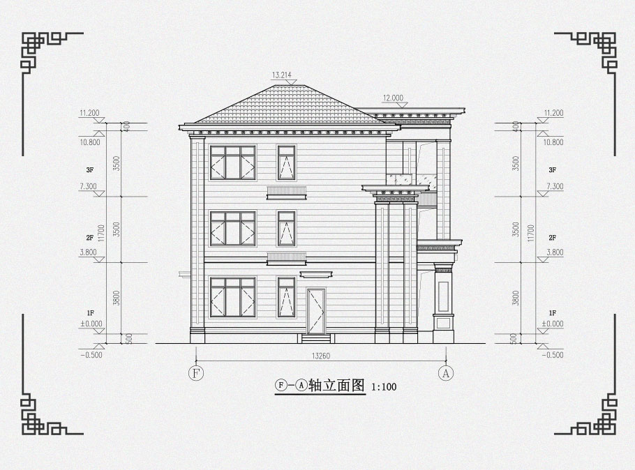 建筑立面圖:東立面圖,西立面圖,南立面圖,北立面圖,剖面圖;