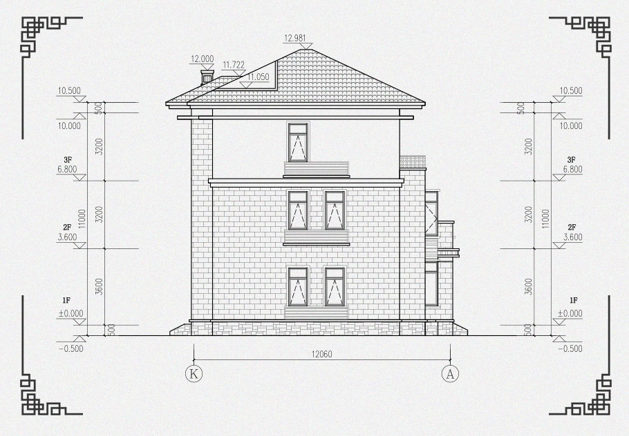 | 風格:新中式 | 層數:三層 | 結構形式:磚混結構 | 圖紙編號:YH-A-3155 |