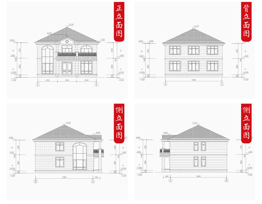 | 建筑圖: | 建筑平面圖:一層平面圖,二層平面圖; 建筑立面圖:東立面圖,西立面圖,南立面圖,北立面圖,剖面圖; 大樣圖:樓梯詳圖,細部大樣,門窗大樣 |