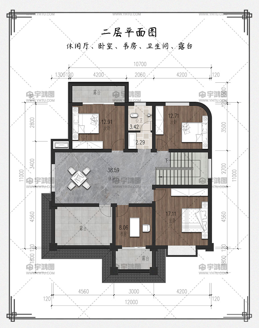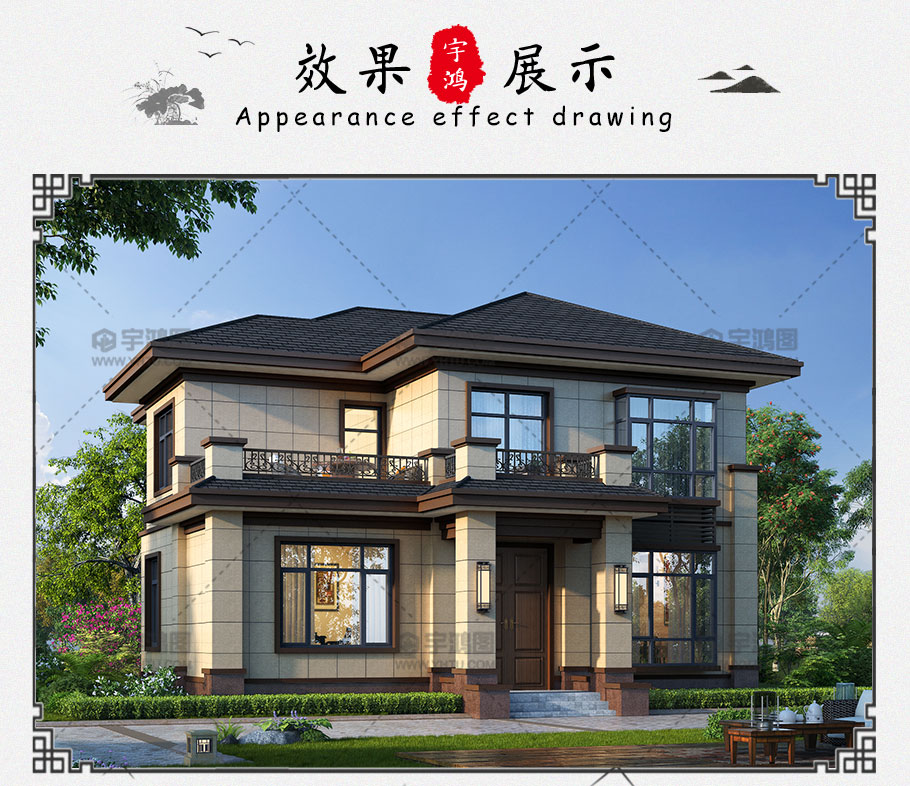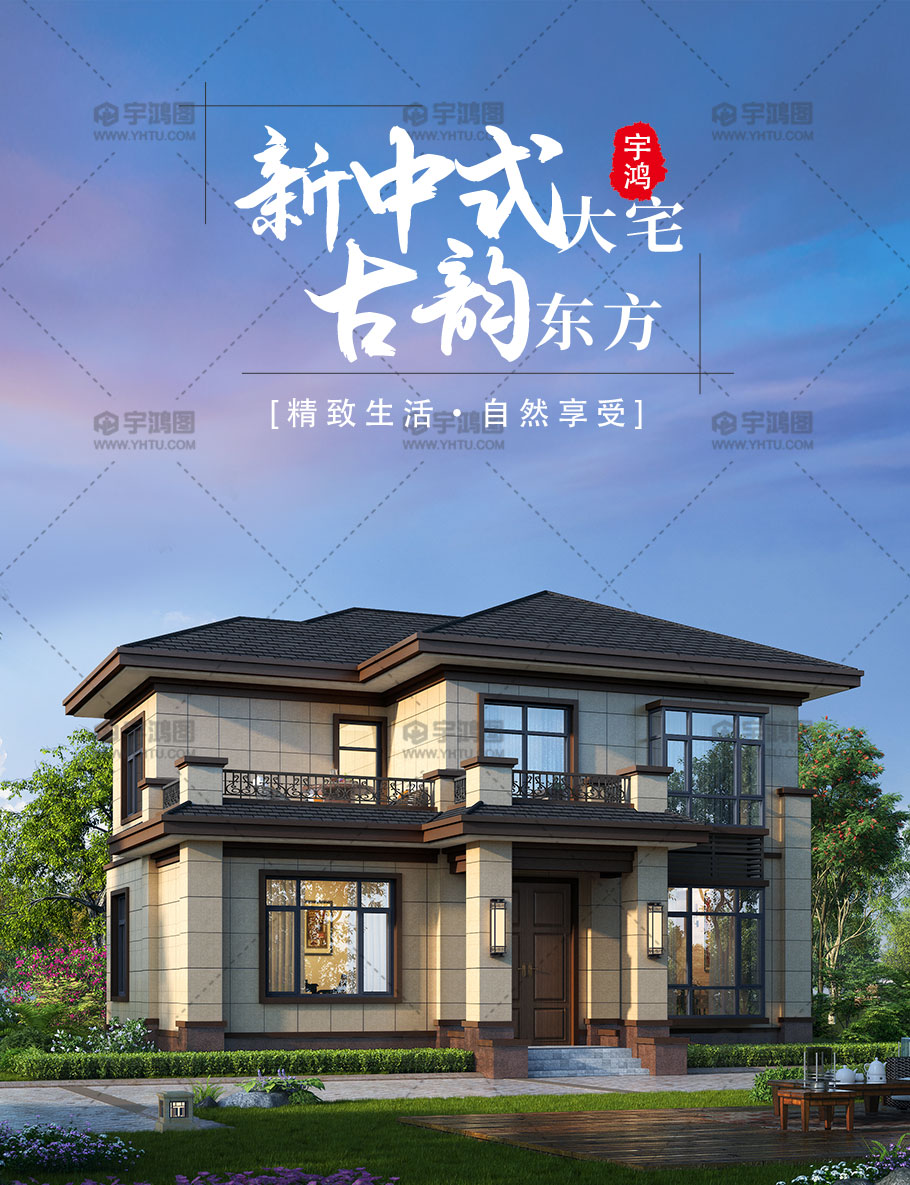 | 風格:新中式 | 層數:二層 | 結構形式:框架結構 | 圖紙編號:YH-A-2157 |