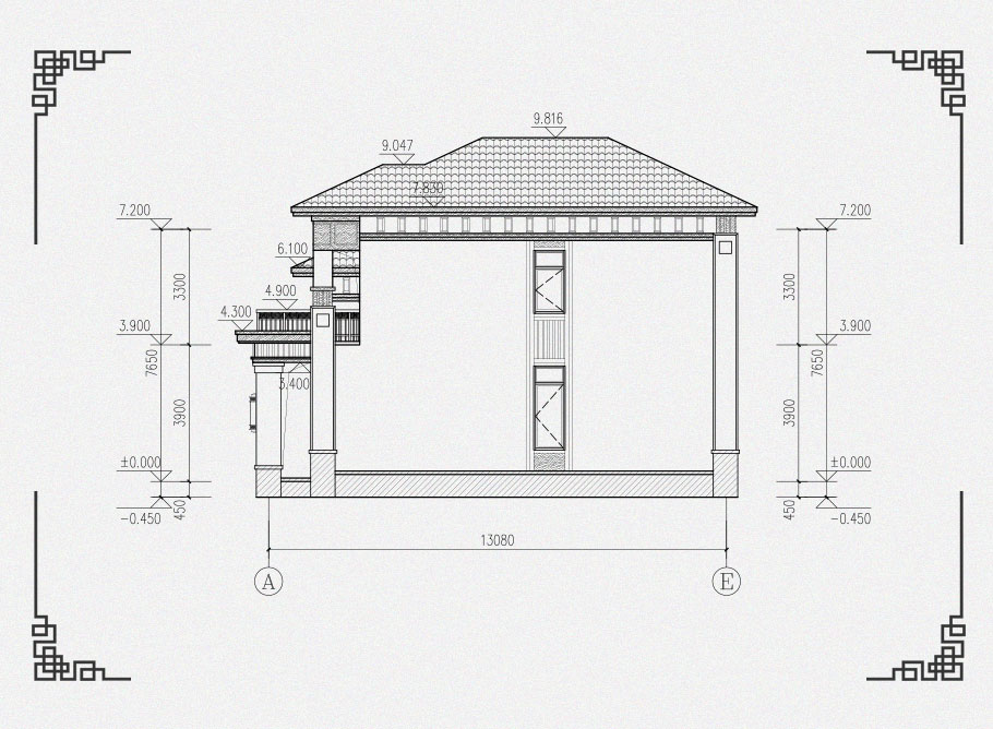 | 建筑圖: | 建筑平面圖:一層平面圖,二層平面圖; 建筑立面圖:東立面圖,西立面圖,南立面圖,北立面圖,剖面圖; 大樣圖:樓梯詳圖,細部大樣,門窗大樣 |