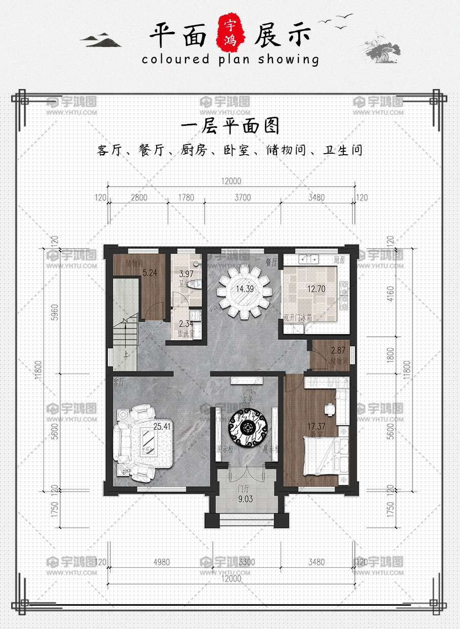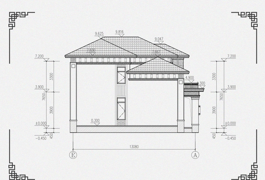 | 開間:12米 | 進深:11.8米 | 占地面積:146.93平方米 | 建筑面積:243.22平方米 |