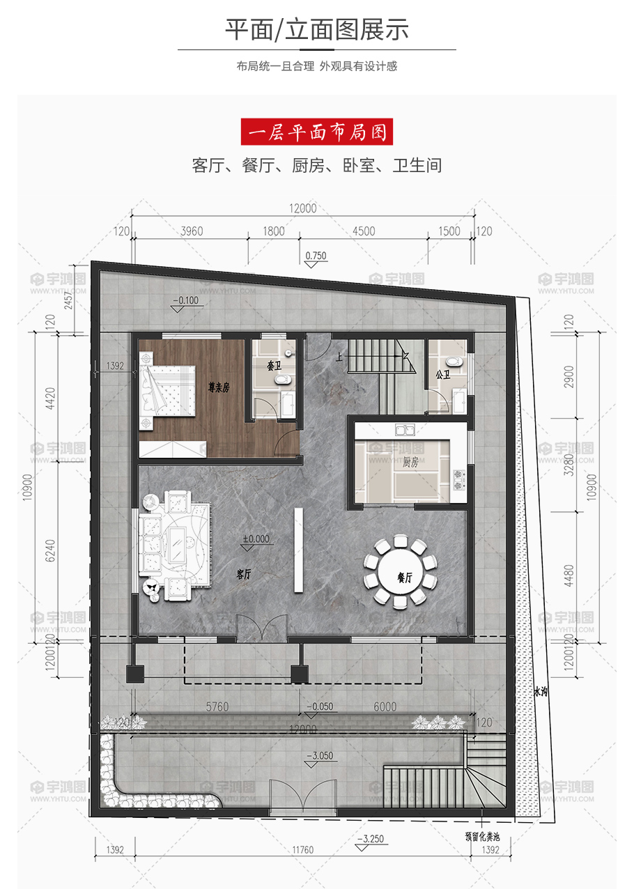 | 開間:12米 | 進深:10.9米 | 占地面積:178.4平方米 | 建筑面積:403.5平方米 |