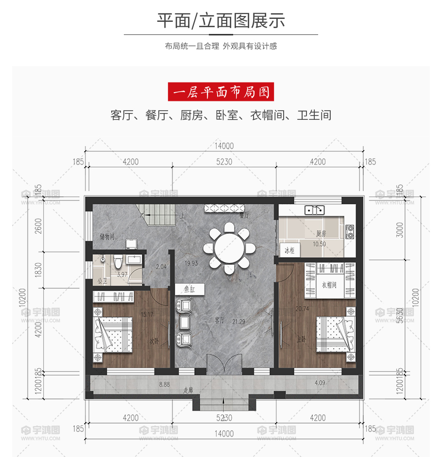 | 開(kāi)間:14米 | 進(jìn)深:10.2米 | 占地面積:138.1平方米 | 建筑面積:252平方米 |