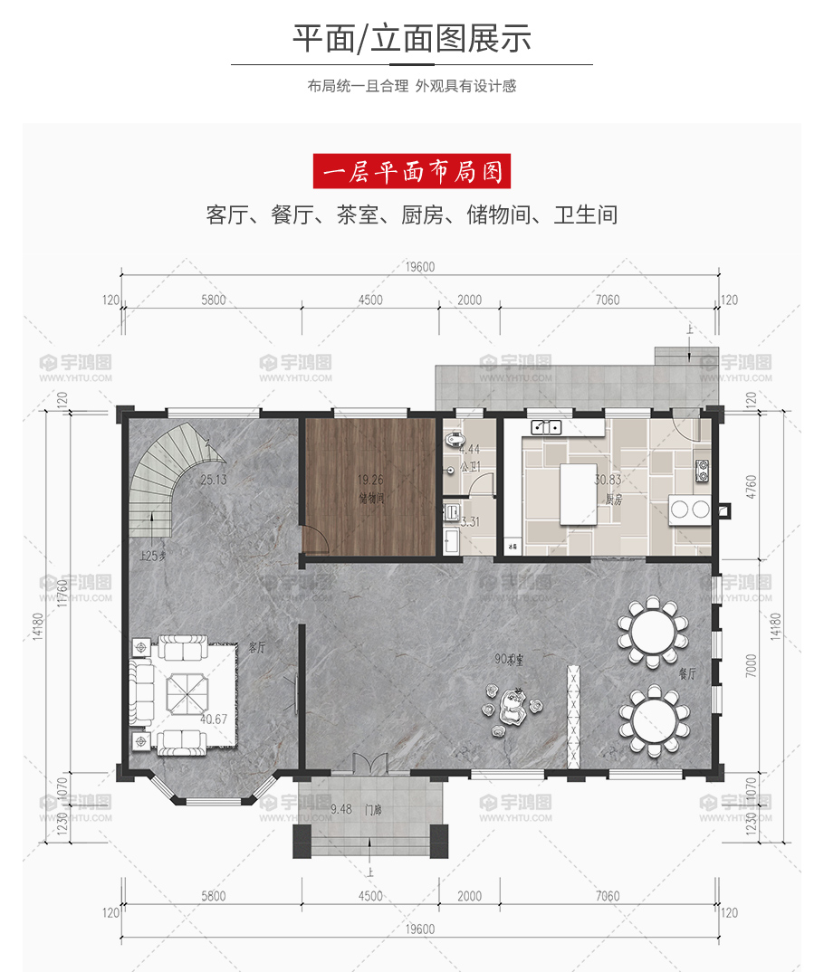 開間:19.6米 | 進深:14.18米 | 占地面積:249.6平方米 | 建筑面積:613平方米 |