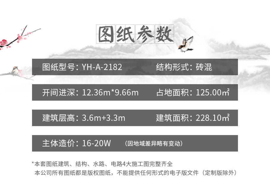 | 風格:中式 | 層數:二層 | 結構形式:磚混結構 | 圖紙編號:YH-A-2182 |