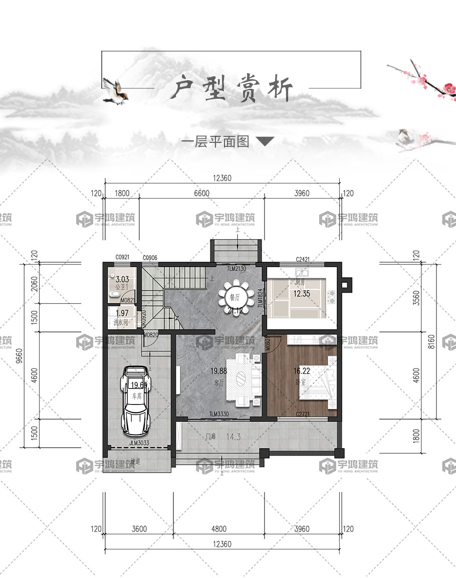 | 開間:12.36米 | 進深:9.66米 | 占地面積:125平方米 | 建筑面積:228.1平方米 |
