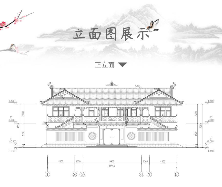 | 開間:21.55米 | 進深:20.4米 | 占地面積:450平方米 | 建筑面積:461.2平方米 |