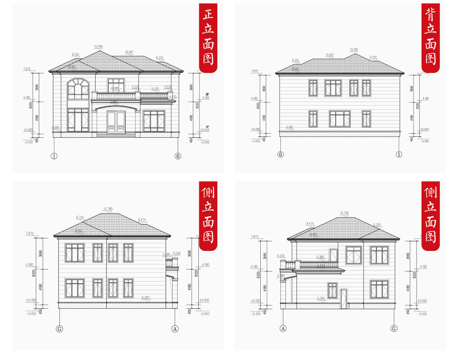 | 建筑圖: | 建筑平面圖:一層平面圖,二層平面圖; 建筑立面圖:東立面圖,西立面圖,南立面圖,北立面圖,剖面圖; 大樣圖:樓梯詳圖,細部大樣,門窗大樣 |