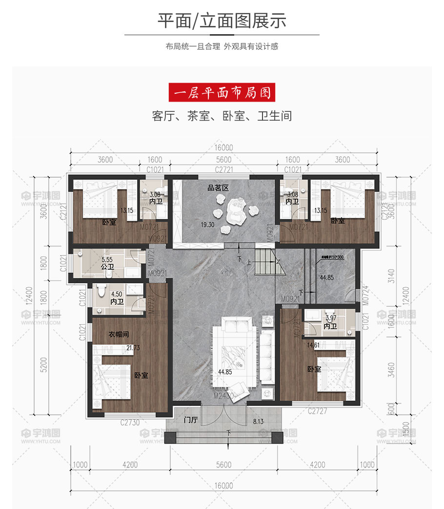 | 開間:16米 | 進深:12.4米 | 占地面積:191.7平方米 | 建筑面積:350.44平方米 |