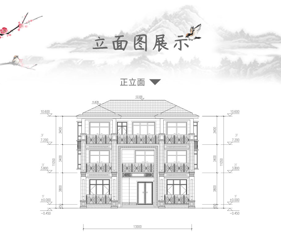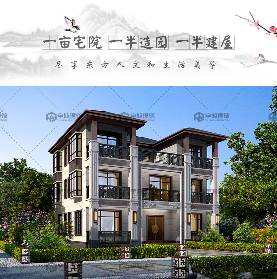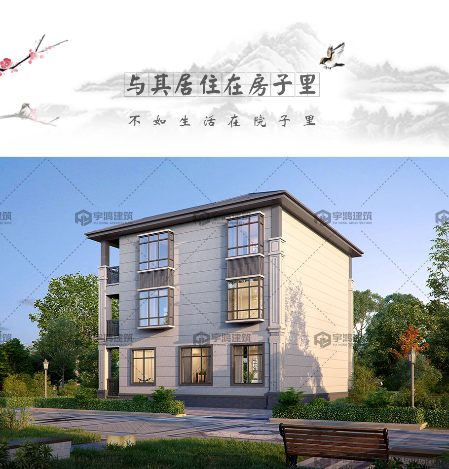 | 風格:新中式 | 層數:三層 | 結構形式:框架結構 | 圖紙編號:YH-A-3199 |
